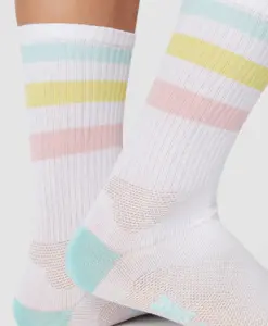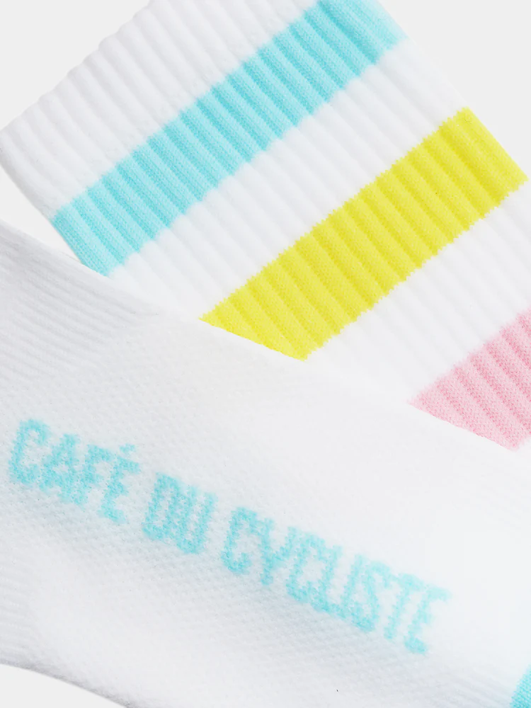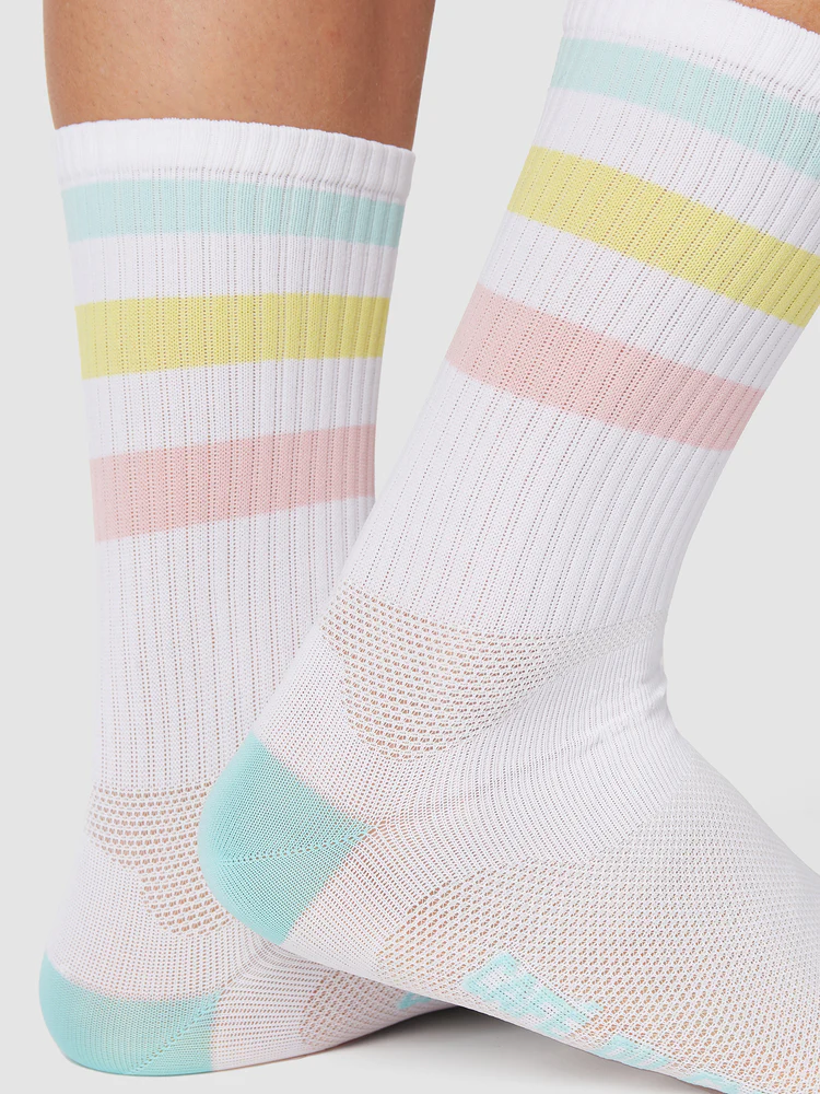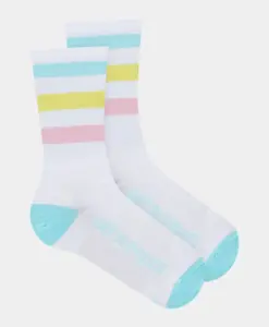 Das Schlauchsocken-Design, inspiriert vom legendären Sport der Siebzigerjahre, verleiht diesen Radsocken einen unverwechselbaren und einzigartigen Stil. Sie sind besonders leicht, bieten ein weiches Tragegefühl und besitzen die perfekte Mischung aus Form, Funktion und aktiver Leistung. Alle unsere Radsportsocken bestehen aus einer speziell ausgewählten technischen Stoffmischung, die langlebig, feuchtigkeitsableitend und schnelltrocknend ist. Zudem verfügen unsere Socken über Anti-Blasen-Garn, um den Langzeitkomfort zu erhöhen. Der obere Bereich unserer Radsocken ist belüftet und sorgt somit für zusätzliche Temperaturkontrolle. Diese gestreiften Socken mit hohem Schaft werden in Italien gefertigt.