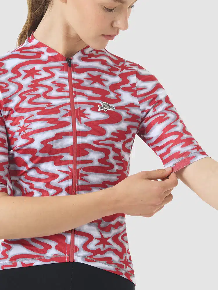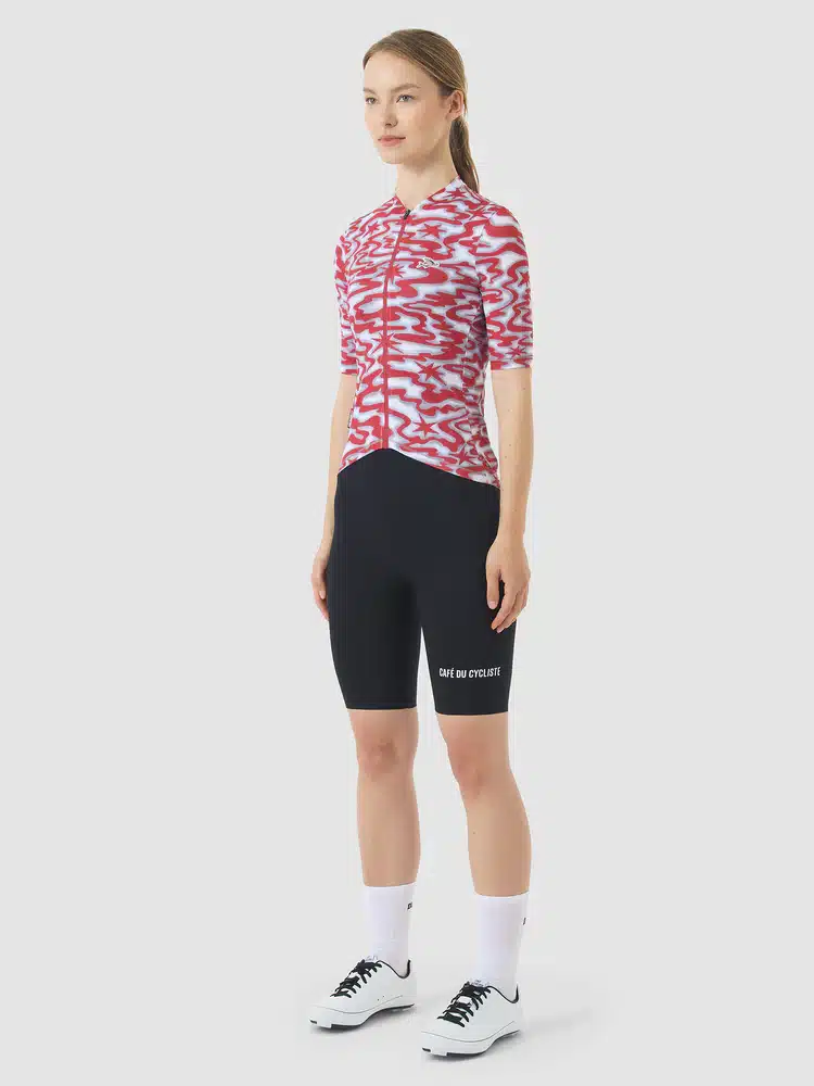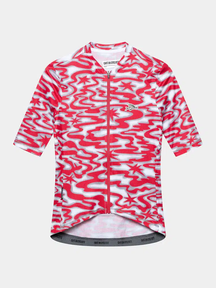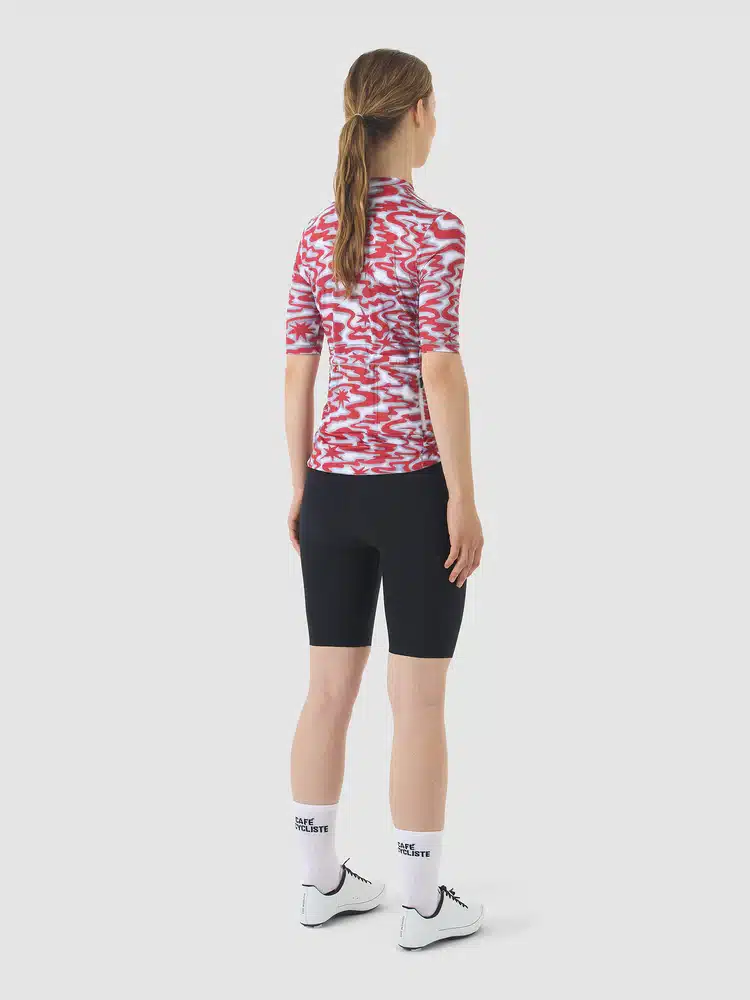 The new reference style for keeping cool on the Côte d’Azur. Laurette is the product of fifteen years of riding in la fournaise, the furnace of a Mediterranean summer, built from scratch for ultimate hot-weather performance. Featuring a new mesh fabric, longer-cut sleeves for protection from the sun, a low-profile collar and a race-oriented fit, plus signature Café du Cycliste looks. Three back pockets and a secure zipped valuables pocket provide storage, while ultra-wicking and fast-drying fabric panels help you keep cooler for longer and riding in Riviera style.