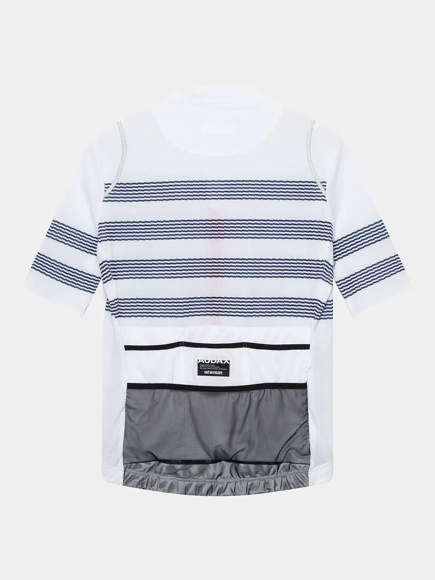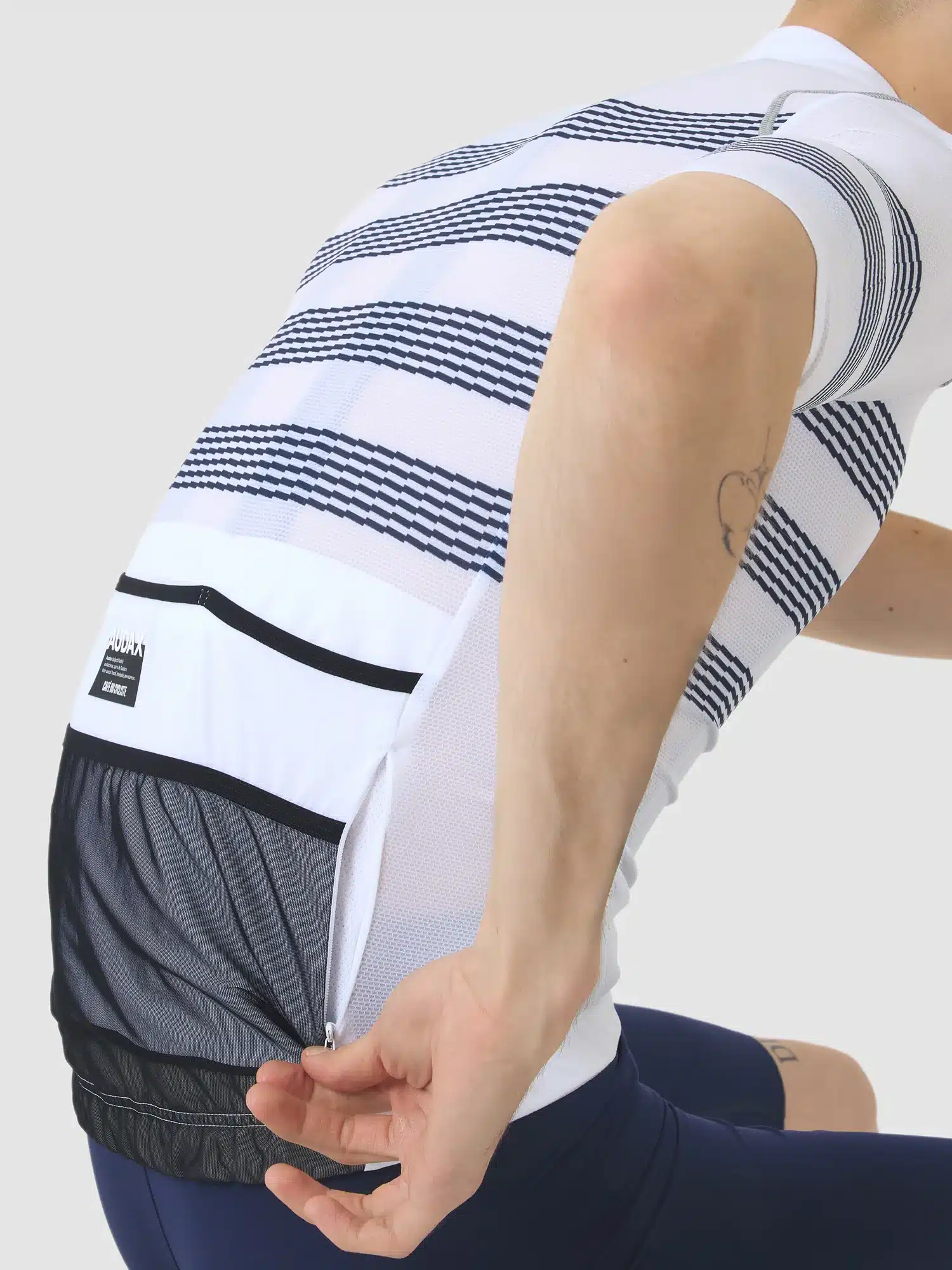 Part of our long-distance Audax collection, the super-light Mona is built for big summer riding. The high-wicking and fast-drying semi-mesh fabric provides exceptional ventilation, aiding core temperature control when the going gets tough and the mercury rises. Mona features our unique oversized mesh drop pocket, providing storage options for extended rides, and reflective detailing to help you be seen as the sun goes down.