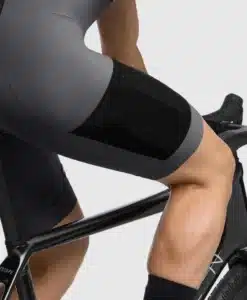 A lightweight, ultrabreathable textile band across the leg opening. The microdot silicone treatment is invisible from the outside but stabilizes fit and maintains grip while wet.