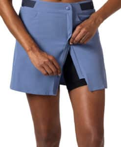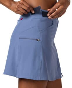 The Venture Skort continues Terry’s mission to offer female cyclists the best fit, styling and versatility when it comes to cycling skorts. Use it for biking (road or mountain), for hiking, for travel or for work – a separate padded liner makes this wearable for all. The outer skirt uses a new adjustment system at the waist that helps you dial in your preferred fit, and has front hand pockets along with smartphone-sized secure zip pocket. It also has a full front vertical zipper and rear hem splits for the ultimate in mobility and is made of a recycled stretch woven fabric that’s lightweight and quiet in motion. Sold with our separate Universal Liner, padded for comfort.